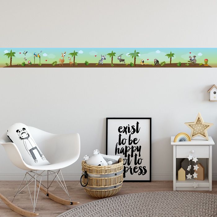 „Roooaaaar“ und „Töörööööö“ – so ertönt es bald in Deinem Kinderzimmer. Hol Dir einen kompletten Zoo inklusive der Bewohner in Dein Zimmer. Die Zoo-Bordüre bildet viele tolle Zootiere in passender Landschaft und Umgebung ab. Gib Zebras, Giraffen, Affen, bunten Papageien und Co ein neues Zuhause. Die vielen Palmen, Pflanzen und Wolken machen die Zoowelt perfekt.