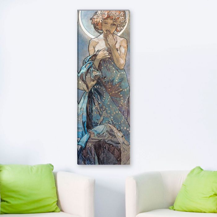Das Gemälde „der Mond“ sticht vor allem wegen der vielen pastelligen Blautöne auf. Jedoch ist die ganze Aufmerksamkeit auf den Mond gerichtet, der hinter dem Kopf der jungen Dame erstrahlt. Die junge Dame im Vordergrund hat ein edles Kleid an, verziert mit unzähligen kleinen Sternen.