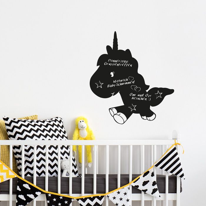 Dieses Wandtattoo besteht aus einer speziellen Tafelfolie und kann mit normaler Kreide ganz einfach beschrieben werden. Das Wandtattoo zeigt ein Einhorn, auf dem man wichtige Termine, Notizen, To-Do-Listen oder einfach liebe Grüße mit Kreide notieren kann. Das Einhorn passt natürlich am besten in die Kinderzimmer der Mädels.