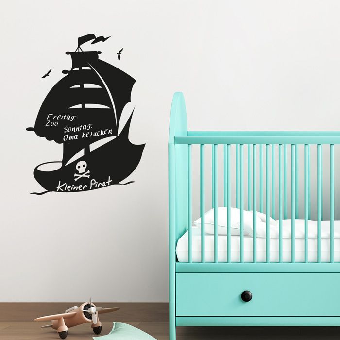 Das Wandtattoo Piratenschiff ist aus spezieller Tafelfolie gefertigt, die Ihr nach Lust und Laune beschreiben könnt. Egal ob Ihr oder Eure Kinder. Das kleine Piratenschiff passt hervorragend über die Schreibtische im Kinderzimmer und auf den großen Segeln und im Rumpf des Schiffes ist genügend Platz für allerlei Erinnerungen, Termine oder Notizen.