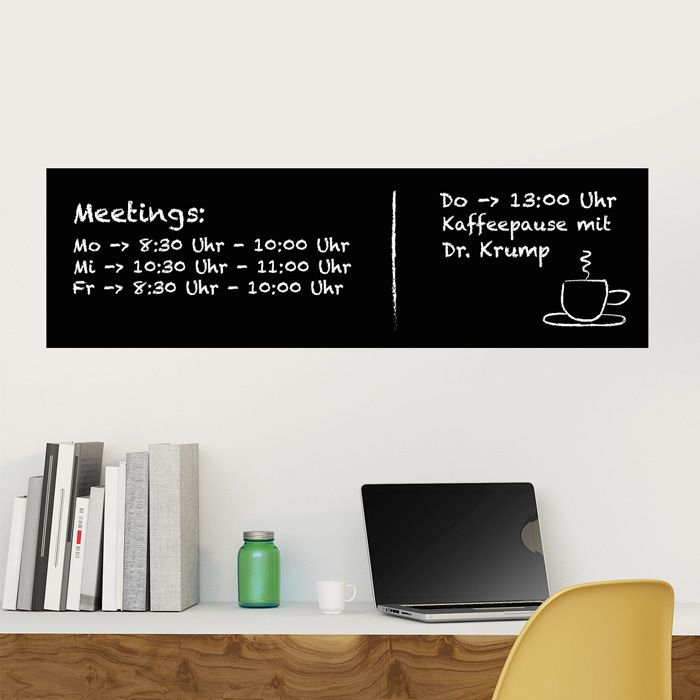 Mit dieser speziellen Tafelfolie könnt schnell Eure eigene beschreibbare Tafel an die Wand kleben. Die Folie ist 100 x 30 cm, eine optimale Größe für kleine Notizen zwischendurch, z. B. in der Küche, über dem Schreibtisch oder an einem anderen Platz.