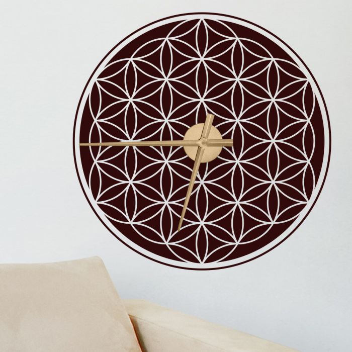 Die Wandtattoo Uhr zeigt die „Blume des Lebens“. Sie besteht aus 19 einzelnen Kreisen, die zusammen viele einzelne geometrische Blumen bilden. Sie ist das Ursymbol der Schöpfung. Eine stylische Wandtattoo Uhr, die nicht nur etwas für spirituelle Menschen ist. Die trendige Uhr passt ins Wohn-, Schlaf- oder Esszimmer.