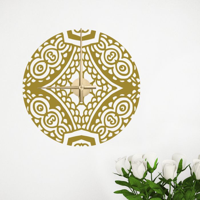 Diese Wandtattoo Uhr erinnert an ein Mandala. Da die Formen der Wandtattoo Uhr an den Orient erinnern, passt diese Uhr perfekt in orientalisch eingerichtete Wohnräume. Kombiniere einen schönen Gold-Ton der Wandtattoo Uhr mit einem silbernen Uhrwerk oder auch andersherum und schon wird diese Uhr zu einem tollen Hingucker an Deiner Wand.
