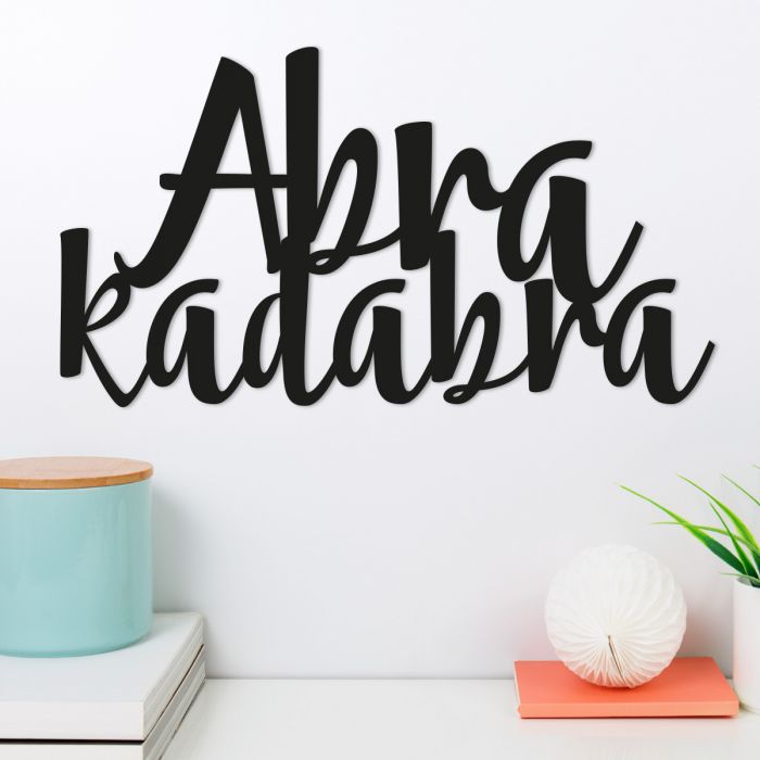 Das Wandwort "Abra kadabra" ist ein Muss für alle Fans der Zauberei! Hier ist es in Schwarz abgebildet und wurde in einer geschwungenen Schreibschrift geschrieben.